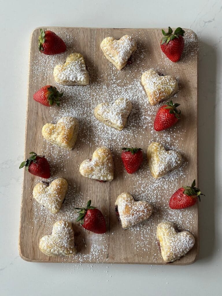 Corazones de hojaldre rellenos de fresas y Nutella