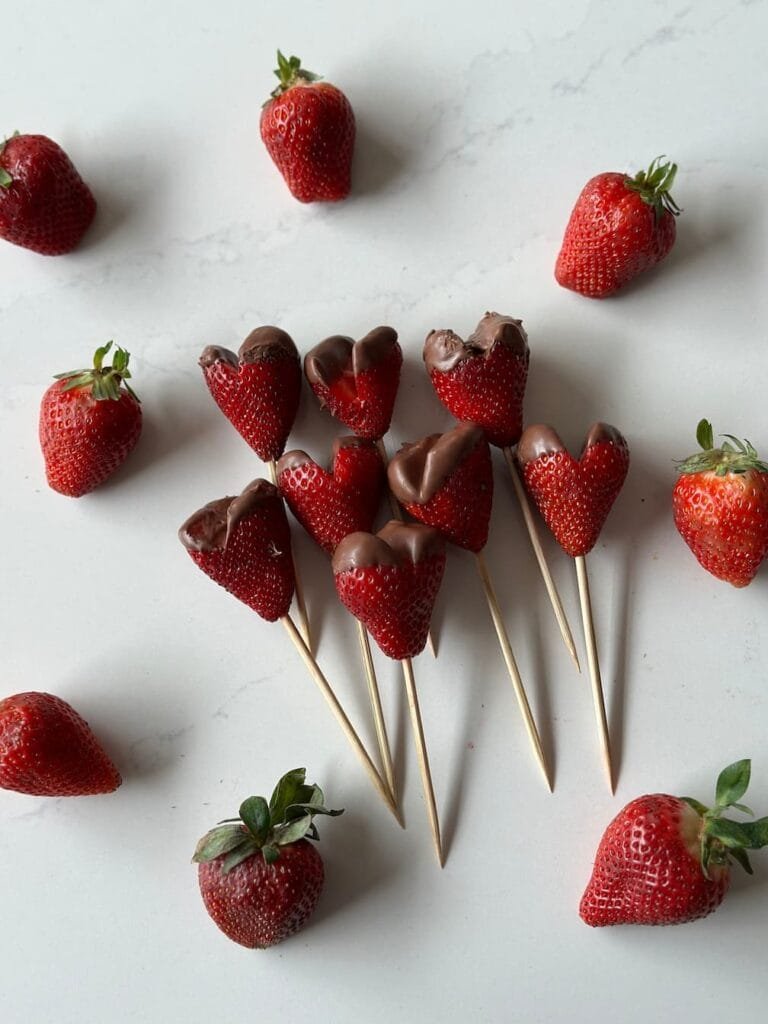 Fresas con chocolate en forma de corazón