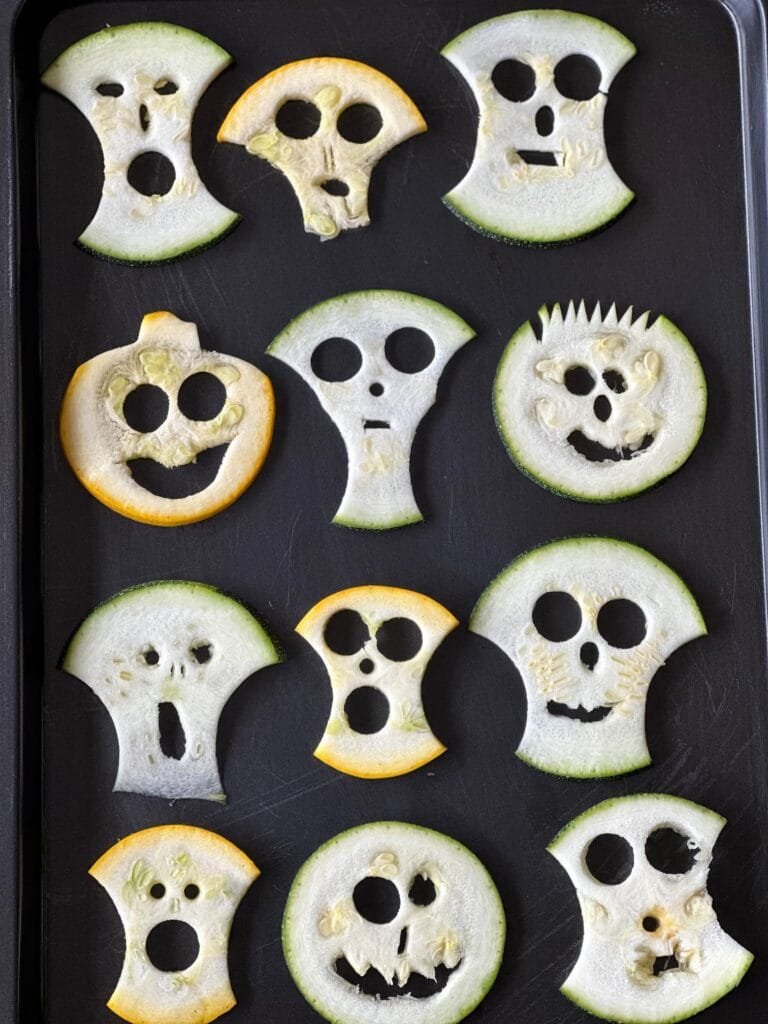 Haz estos monstruos de Zucchini Redondo para que los niños coman saludable pero divertido en este Halloween.