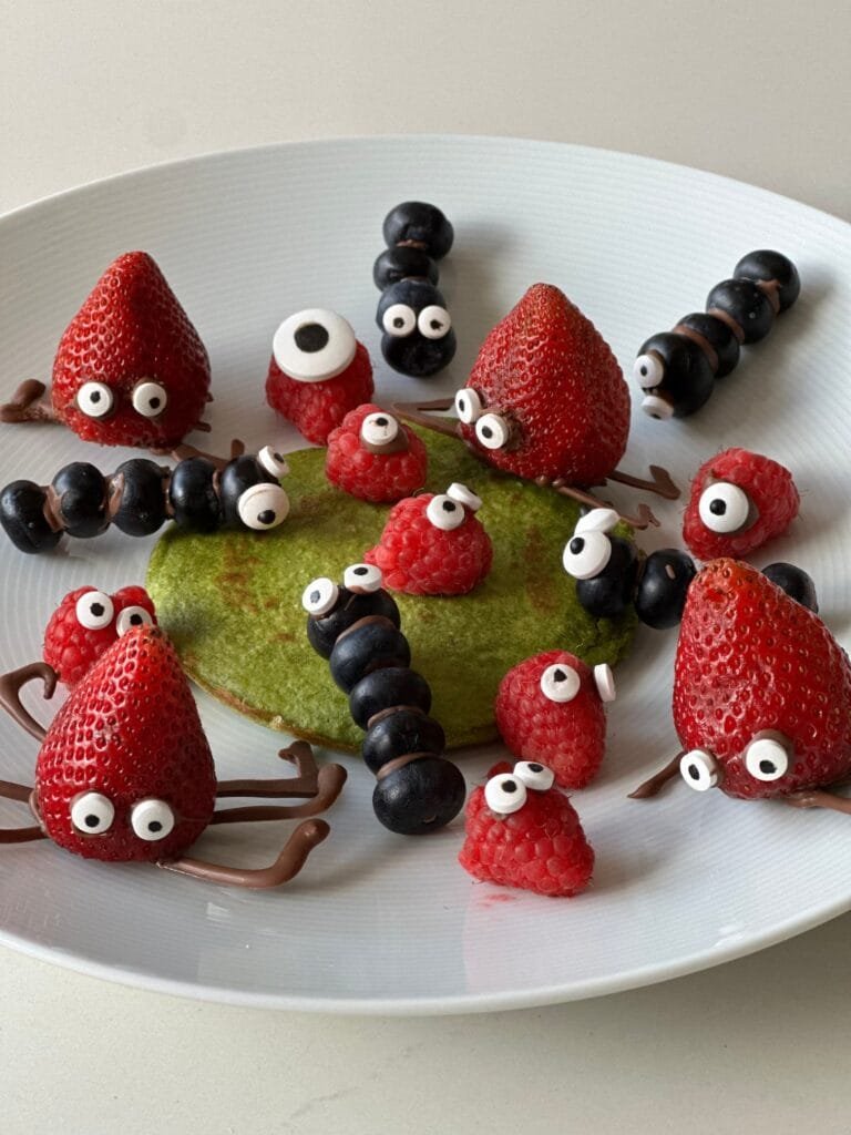 Pancakes verdes con Bichos de frutas