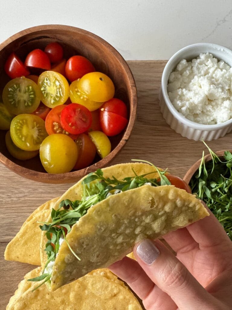 Opción de tacos vegetarianos que quedan igual de deliciosos. Nosotros usamos los tacos de @chicanos1986 y les ponemos: guacamole, MiniTomates, queso feta y brotes.